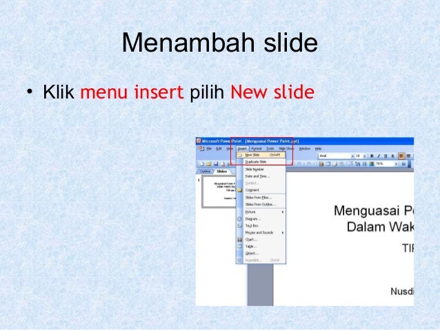 - 12. Menambah slide • Klik menu insert pilih New slide