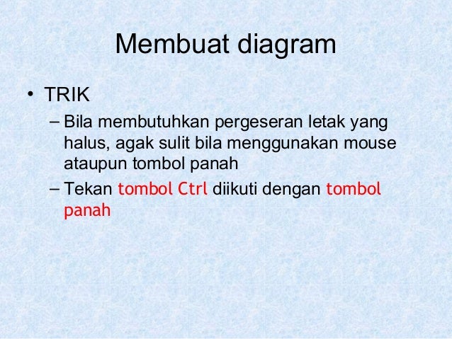 - 31. Membuat diagram • TRIK – Bila membutuhkan pergeseran letak yang halus, agak sulit bila menggunakan mouse ataupun tombol panah – Tekan tombol Ctrl diikuti dengan tombol panah