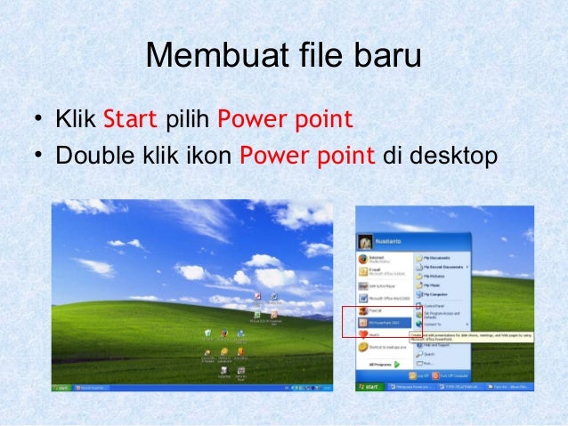 - 4. Membuat file baru • Klik Start pilih Power point • Double klik ikon Power point di desktop